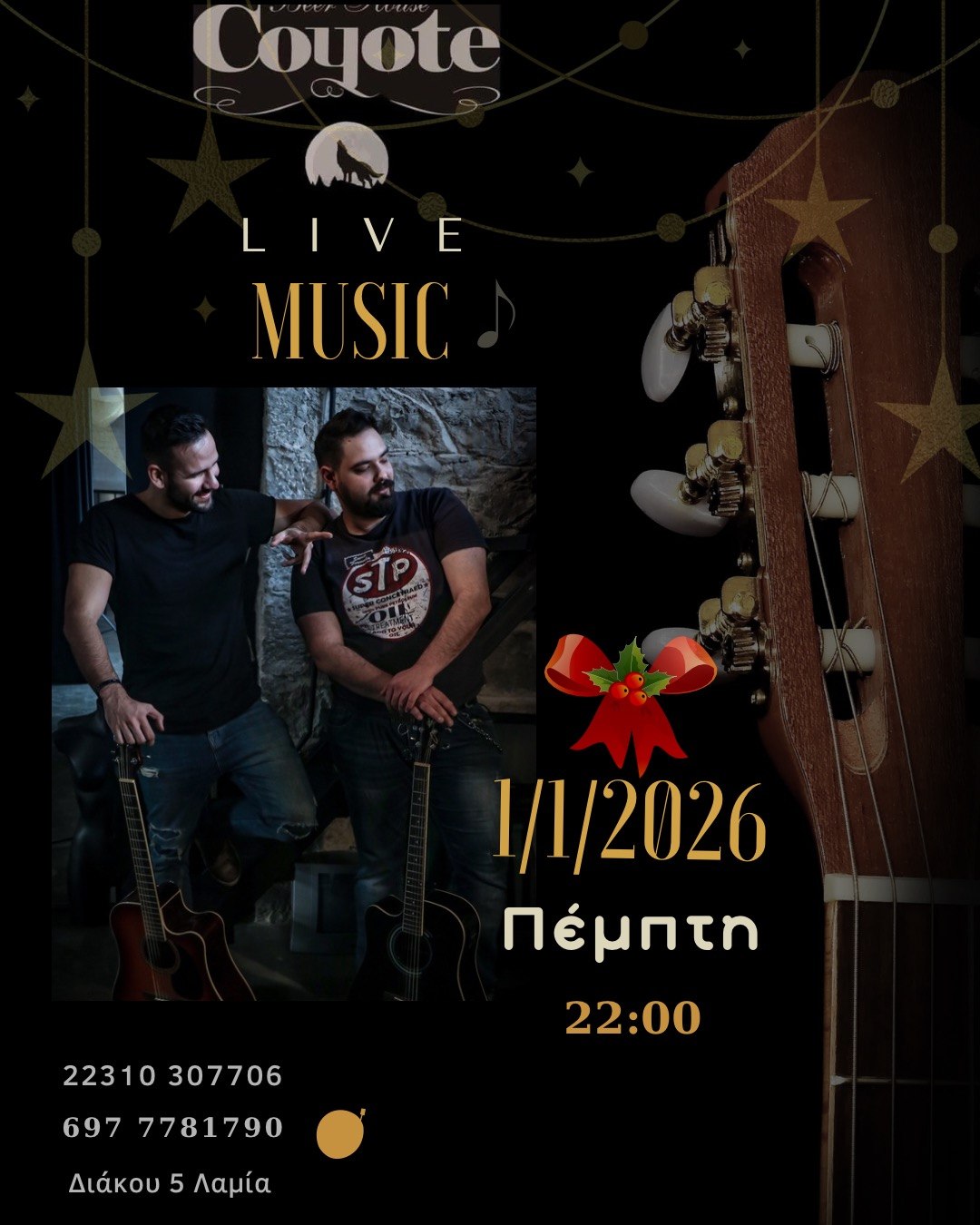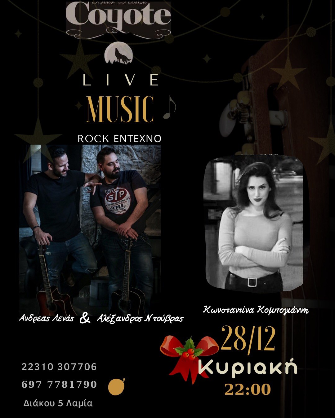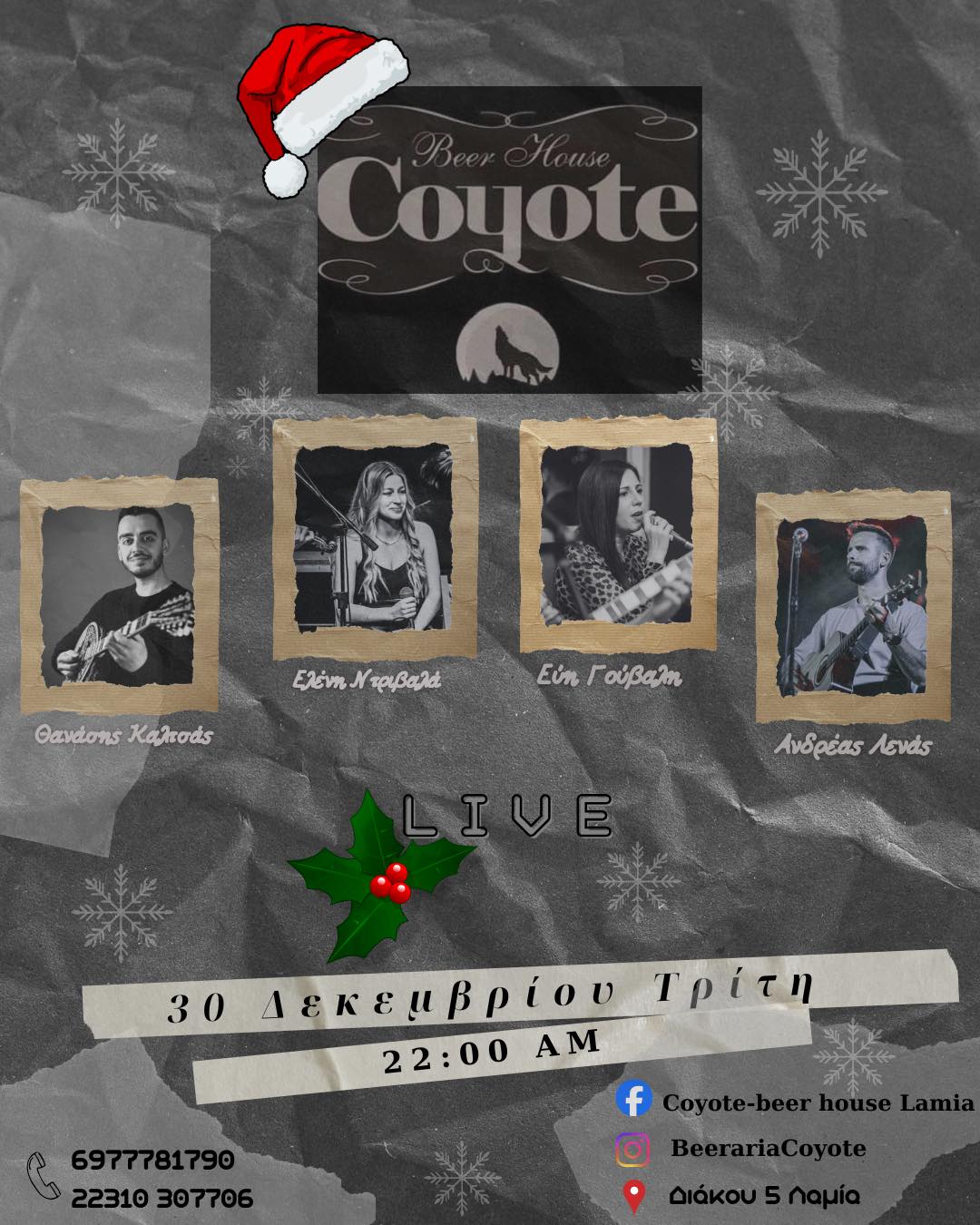 Το Coyote συνεχίζει δυναμικά και αυτή την περίοδο με εορταστικά live, που δίνουν ρυθμό στις νύχτες της πόλης.