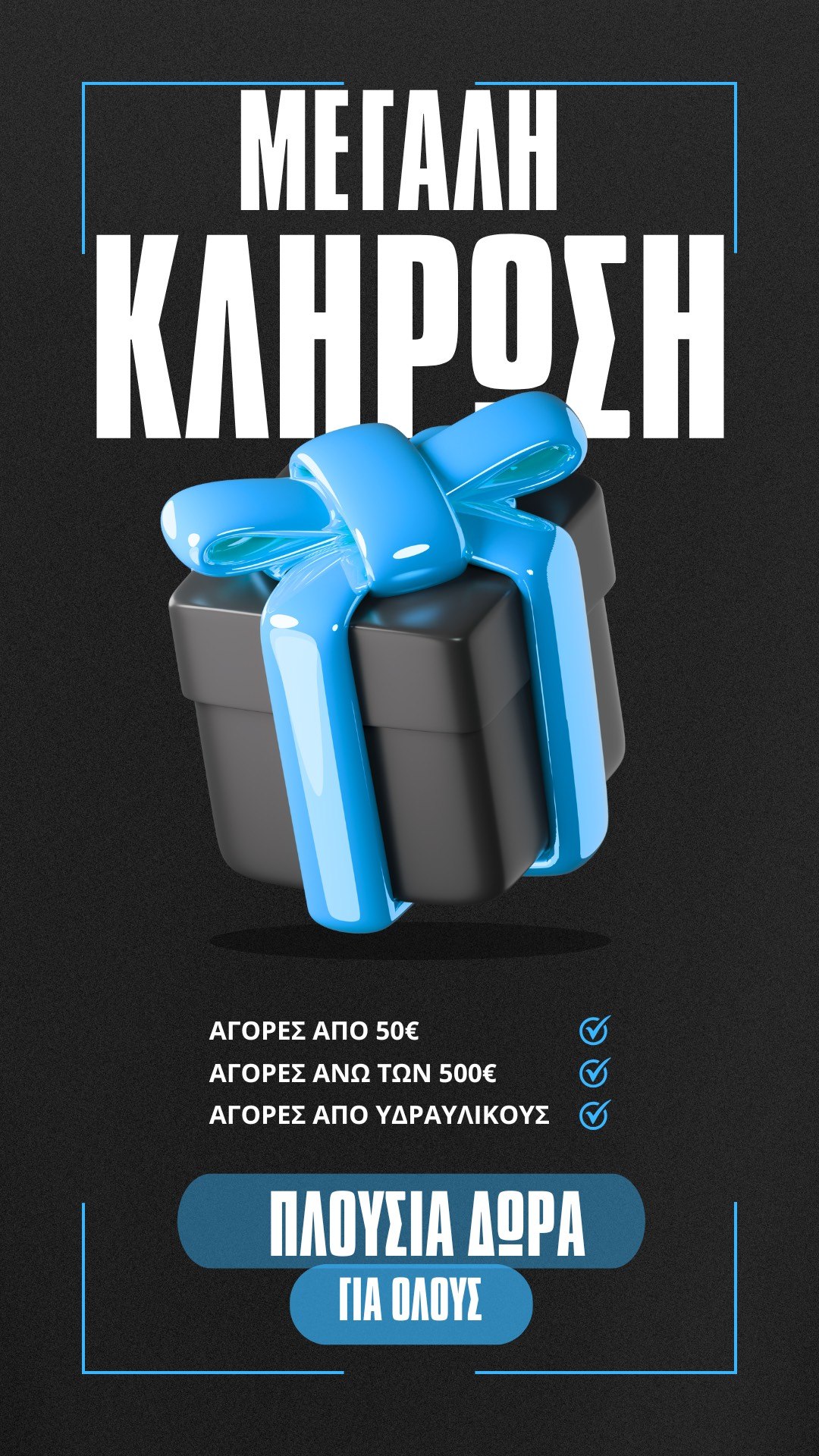 Όσοι επισκεφθούν το κατάστημα και πραγματοποιήσουν αγορές, συμμετέχουν αυτόματα στη μεγάλη κλήρωση. Όσο περισσότερες οι αγορές, τόσες περισσότερες και οι συμμετοχές!