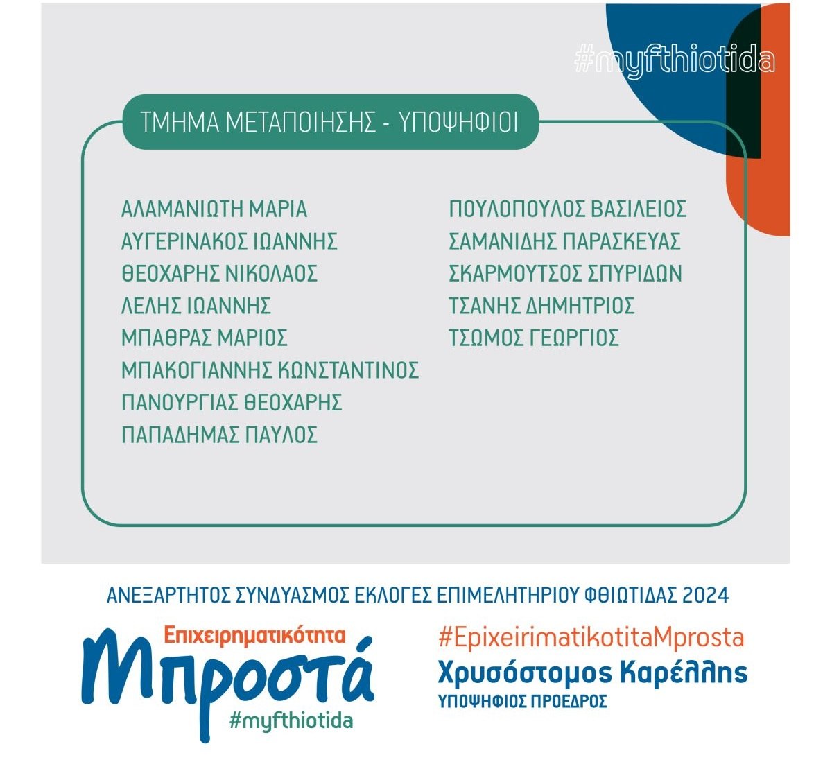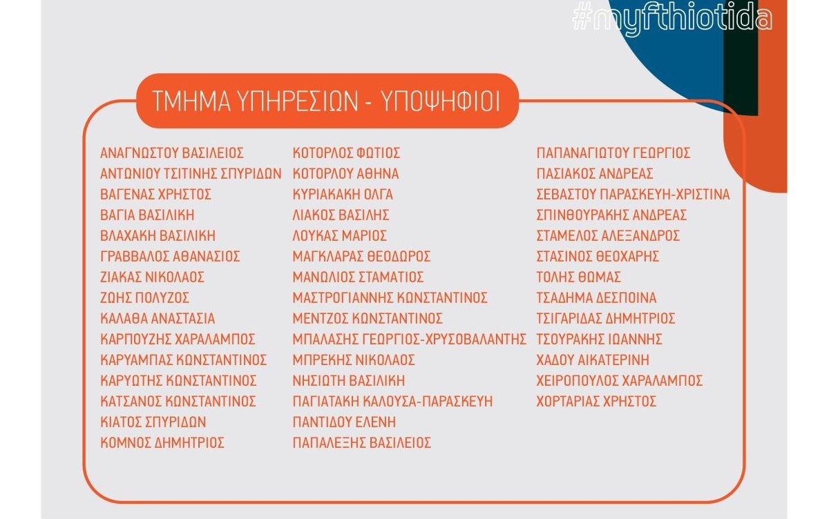 Αναλυτικά τα ονόματα των υποψηφίων είναι: