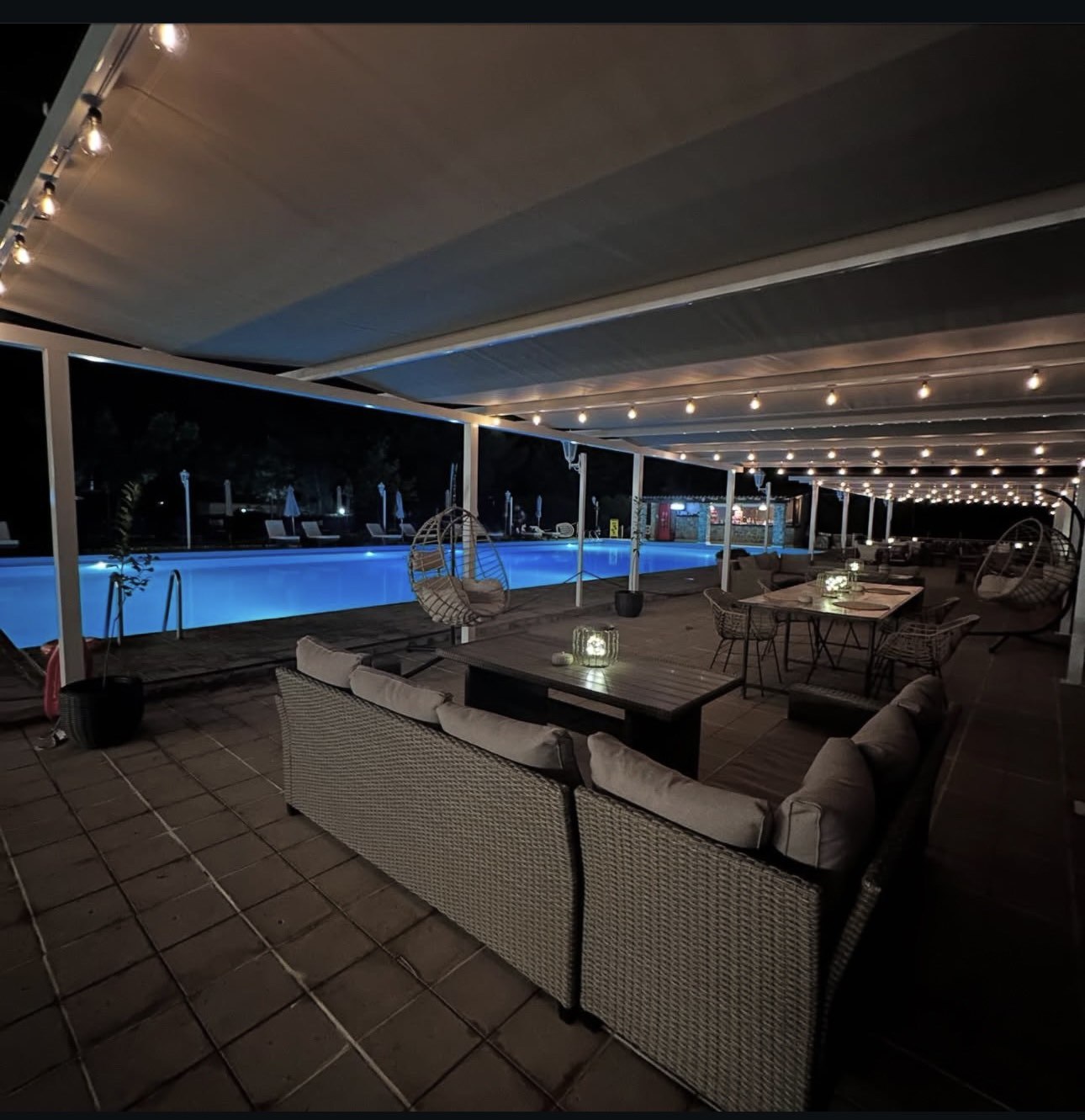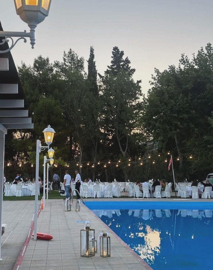 Δύο καταπράσινοι ανοικτοί χώροι δεξιώσεων, με μεγάλη πισίνα, δίπλα στη παραλία, ανοίγουν τις πόρτες τους και δέχονται εσάς και τους καλεσμένους σας για να σας ταξιδέψουν στα όνειρά σας.