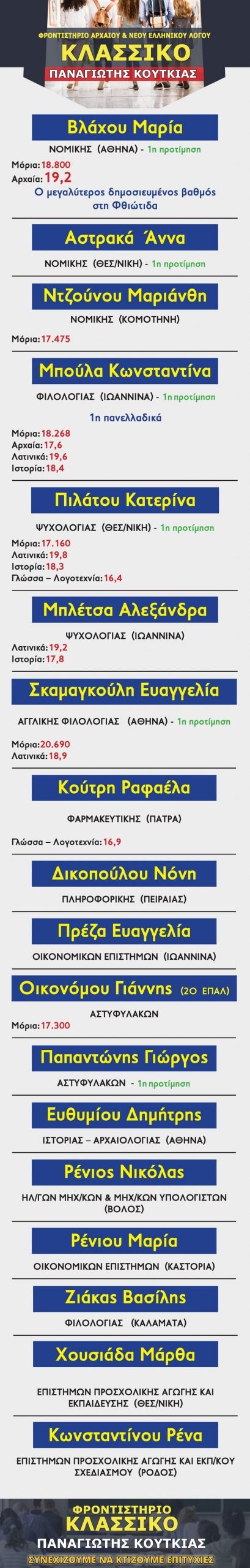 ⇒Βλάχου Μαρία: Αρχαία ελληνικά 19,2 ο μεγαλύτερος δημοσιευμένος βαθμός στη Φθιώτιδα.