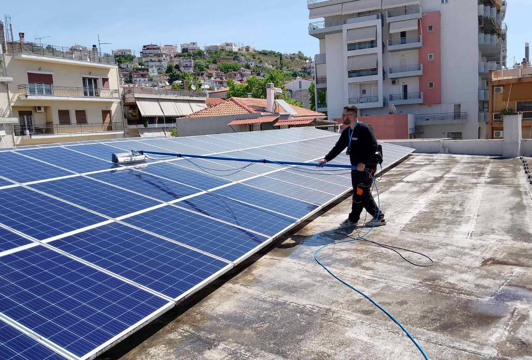 Γι’ αυτό όλες οι κατασκευάστριες εταιρείες φωτοβολταϊκών πάνελ συνιστούν τουλάχιστον δύο (2) καθαρισμούς τον χρόνο, χρησιμοποιώντας μόνο απιονισμένο νερό με καθαρότητα 99,9% και αγωγιμότητα μικρότερη από < 0,5 ms/cm.