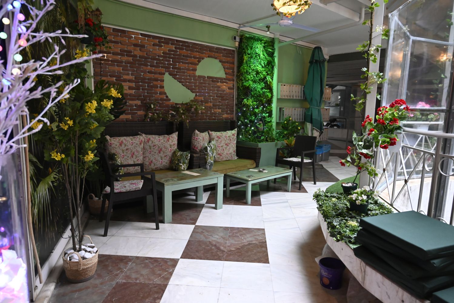 Οι επισκέπτες εκεί μπορούν να απολαύσουν καφέ ή τσίπουρο σε ένα πιο ήσυχο περιβάλλον, συμπληρώνοντας τη συνολική εμπειρία του καταστήματος.