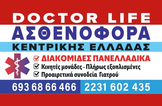Η Doctor Life – Ιδιωτικά Ασθενοφόρα Κεντρικής Ελλάδας βρίσκεται άμεσα στην πόρτα σου με ένα τηλέφωνο στα 6936866466 & 2231602435, ενώ είναι διαθέσιμη 24 ώρες το 24ωρο, 365 μέρες τον χρόνο!