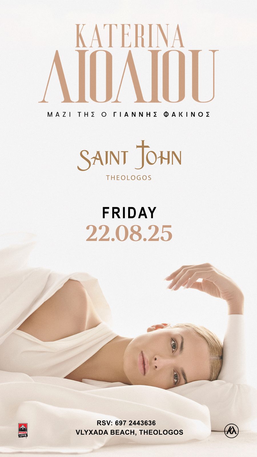 Η Κατερίνα Λιόλιου, η πιο ολοκληρωμένη και επιτυχημένη ερμηνεύτρια της γενιάς της, έρχεται στον Θεολόγο και το beach bar «Saint John», σε ένα άκρως καλοκαιρινό event.