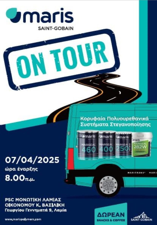 Η Maris Saint-Gobain ταξιδεύει σε όλη την Ελλάδα και κάνει μια στάση με ξεχωριστή σημασία στη Λαμία, παρουσιάζοντας προϊόντα όπως τα MARISEAL 400, 250, 460 και 282W, που προσφέρουν μακροχρόνια στεγανότητα και αξιοπιστία σε κάθε εφαρμογή.
