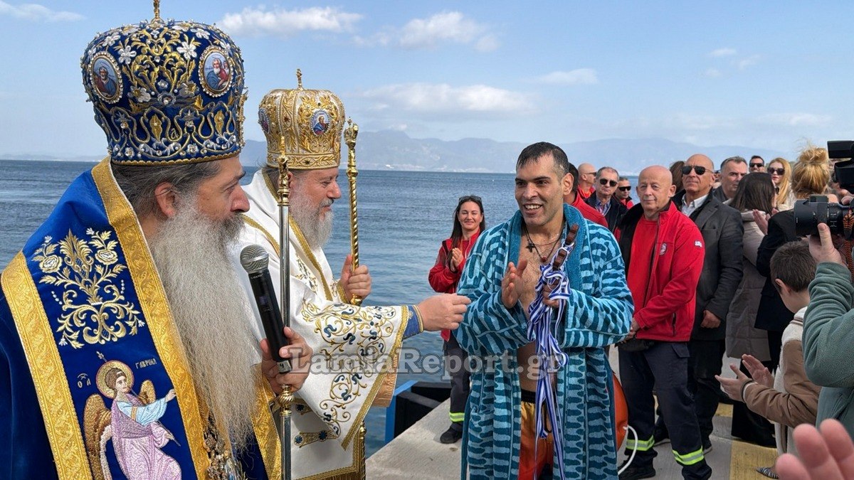 Ο 24χρονος Τάσος από την Αταλάντη, ήταν ο νέος που παρέδωσε τον Σταυρό στους Αρχιερείς παίρνοντας μαζί με τους υπόλοιπους που έπεσαν στη θάλασσα, την ευλογία τους.