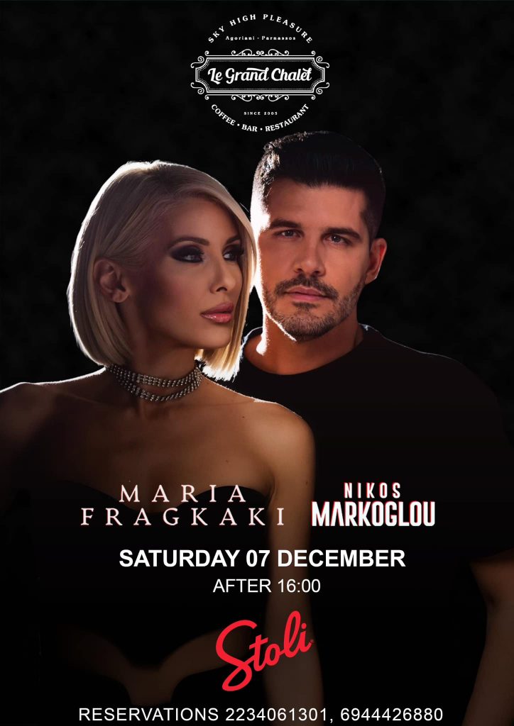Ανάμεσα στα χιονισμένα έλατα και με το κρύο να κυριαρχεί, η Μαρία Φραγκάκη και ο Νίκος Μάρκογλου, στο «Le Grand Chalet» θα βάλουν "φωτιά" και θα χαρίσουν μοναδικές στιγμές κεφιού, με πολύ χορό και διασκέδαση ως αργά το βράδυ!