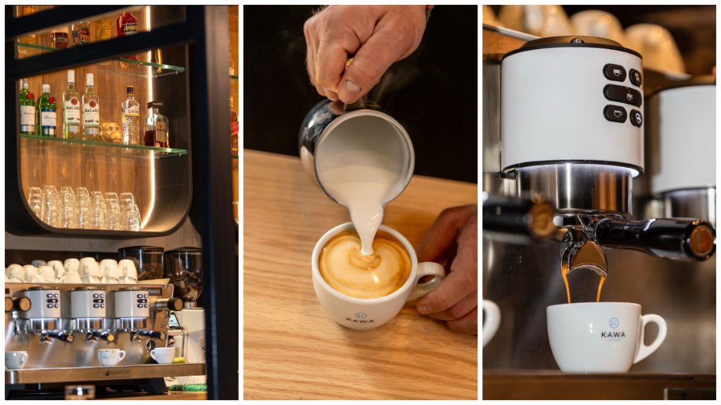 Ξεκινά από νωρίς το πρωί με specialty καφέ Kawa, brunch επιλογές και snacks, και συνεχίζει μέχρι αργά το βράδυ με κρασί, ποτά και signature cocktails.