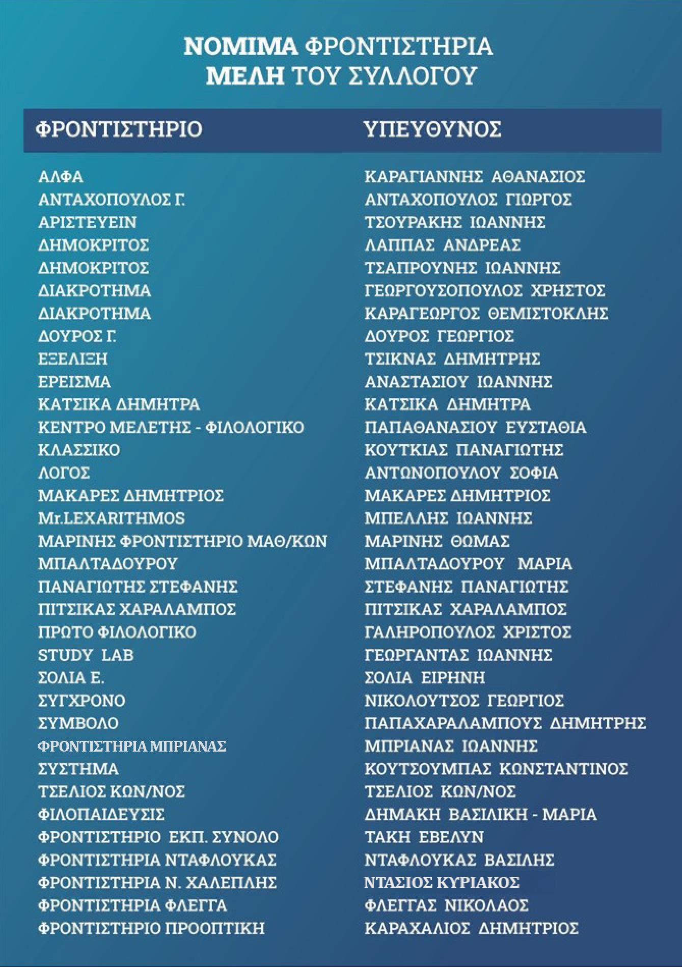 Ο Σύλλογος Ιδιοκτητών Φροντιστηρίων Μέσης Εκπαίδευσης Φθιώτιδας, Φωκίδας, Ευρυτανίας σου υπενθυμίζει: