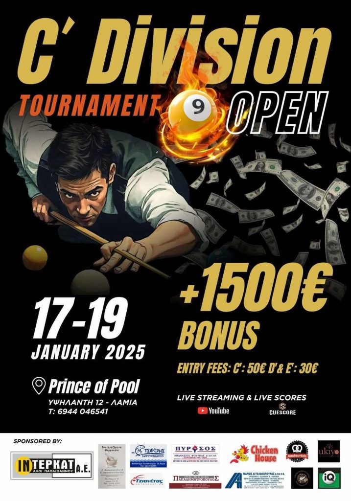 Το "Prince of Pool" διοργανώνει ένα από τα μεγαλύτερα τουρνουά μπιλιάρδου, G' Division, όπου κορυφαίοι αθλητές θα βρίσκονται στη Λαμία για το διάστημα 17-19 Ιανουαρίου 2025.