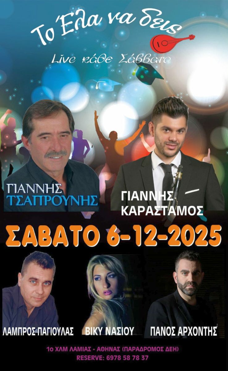 Σε μια βραδιά, με πολλές λαϊκές επιτυχίες αλλά και πλούσιο δημοτικό πρόγραμμα, το μόνο που έχεις να κάνεις είναι να πάρεις την παρέα σου και να έρθεις να απολαύσεις ένα ξεχωριστό Σαββατόβραδο.