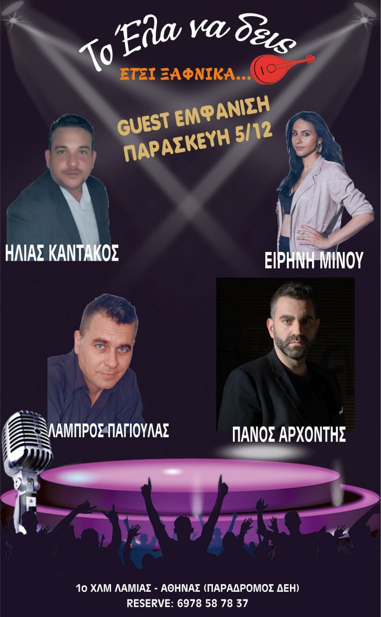 Το αγαπημένο σας στέκι, το «Έλα να δεις», αυτή την Παρασκευή (5/12), θα είναι ανοιχτό για να σας χαρίσει μια μοναδική βραδιά.