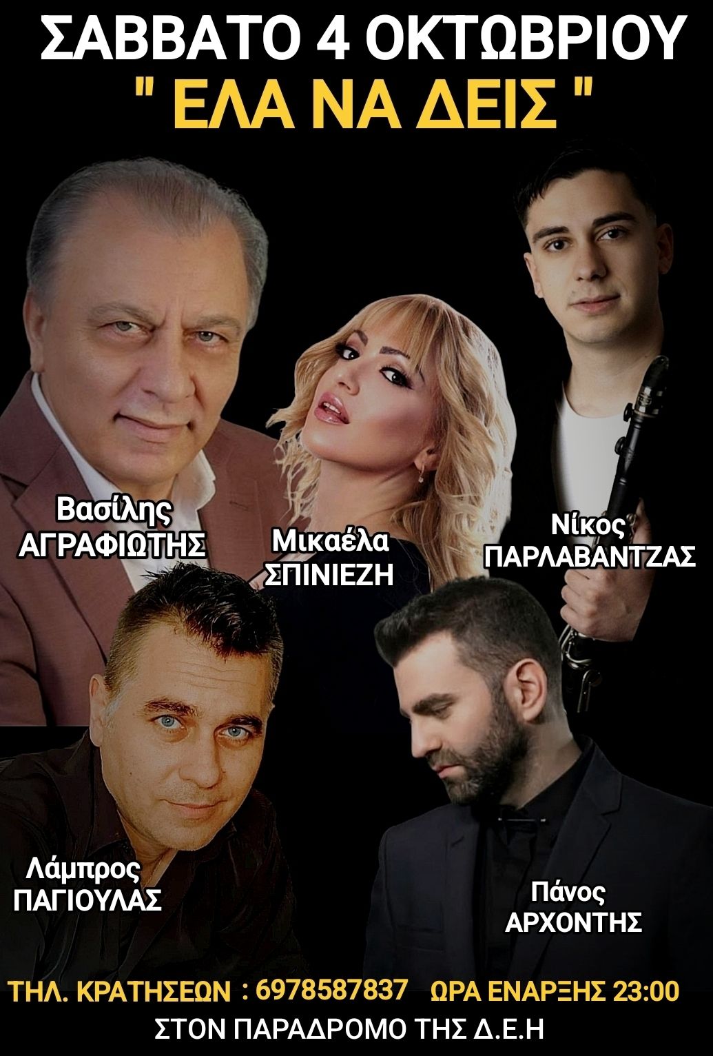 Αύριο Σάββατο έρχεται το μεγάλο Opening με τον Βασίλη Αγραφιώτη, τη Μικαέλα Σπινιέζη, τον Νίκο Παρλαβάντζα, τον Λάμπρο Παγιούλα και τον Πάνο Αρχοντή, σε ένα εκρηκτικό σχήμα που υπόσχεται ατελείωτο γλέντι και διασκέδαση μέχρι το πρωί.