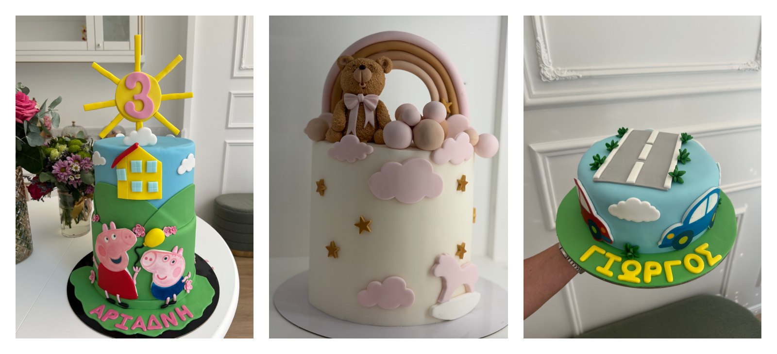 Κάθε τούρτα είναι σχεδιασμένη ξεχωριστά, πάνω στην ιστορία ή την ιδέα του πελάτη, από girly, παιδικά, παραμυθένια σχέδια μέχρι μίνιμαλ, elegant δημιουργίες για ιδιαίτερες περιστάσεις.