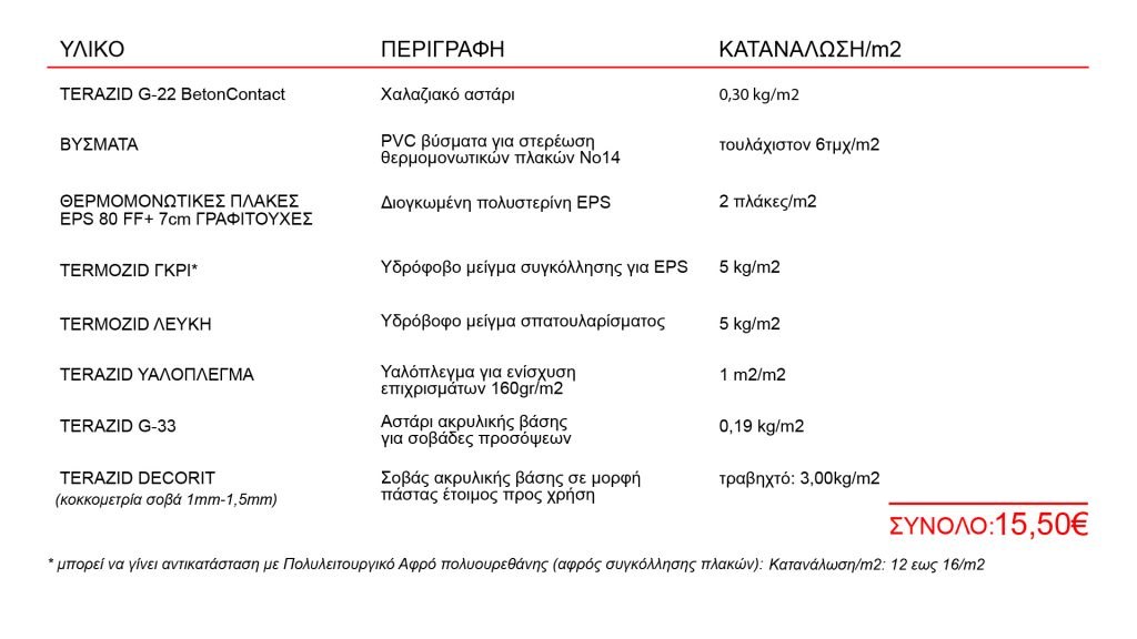 * Πιστοποιημένο σύστημα θερμοπρόσοψης σύμφωνα με τα ευρωπαϊκά πρότυπα-κανονισμούς CE και ETAG 004.