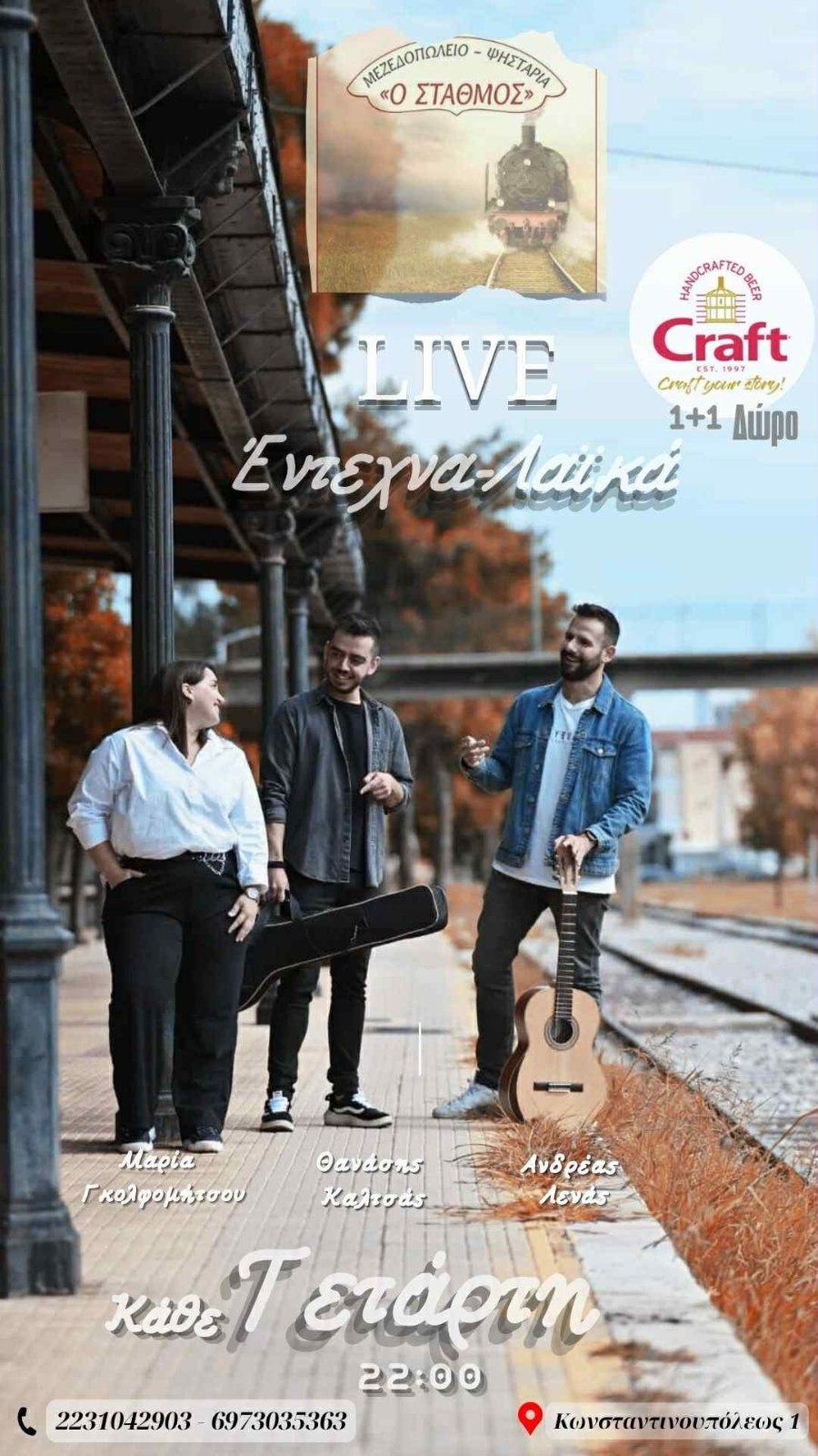 Κάθε Τετάρτη μοναδική προσφορά με 1+1 μπύρα Craft - Στον Παλιό Σταθμό το κέφι σας αποτελεί προτεραιότητα και γίνεται σε προσιτές τιμές, με εγγύηση ποιότητας.