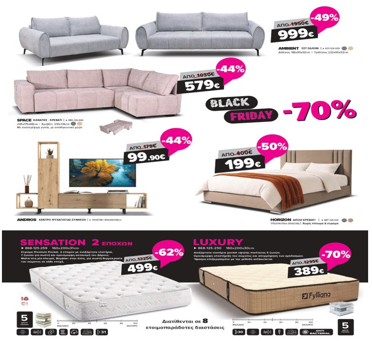 και ανακάλυψε μοναδικές προσφορές σε καναπέδες, κρεβάτια, στρώματα, κομοδίνα,