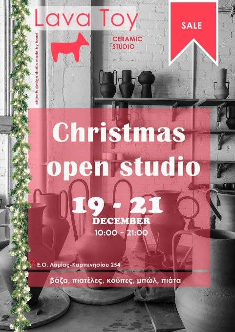 Το εργαστήριο κεραμικής Lava Toy δραστηριοποιείται στην πόλη της Λαμίας τα τελευταία τέσσερα χρόνια και σας προσκαλεί από την Πέμπτη 19 Δεκεμβρίου μέχρι και το Σάββατο 21 Δεκεμβρίου, από τις 10:00 μέχρι τις 21:00, να το επισκεφθείτε και να χαρίσετε στους αγαπημένους σας δώρα με αισθητική και αγάπη.