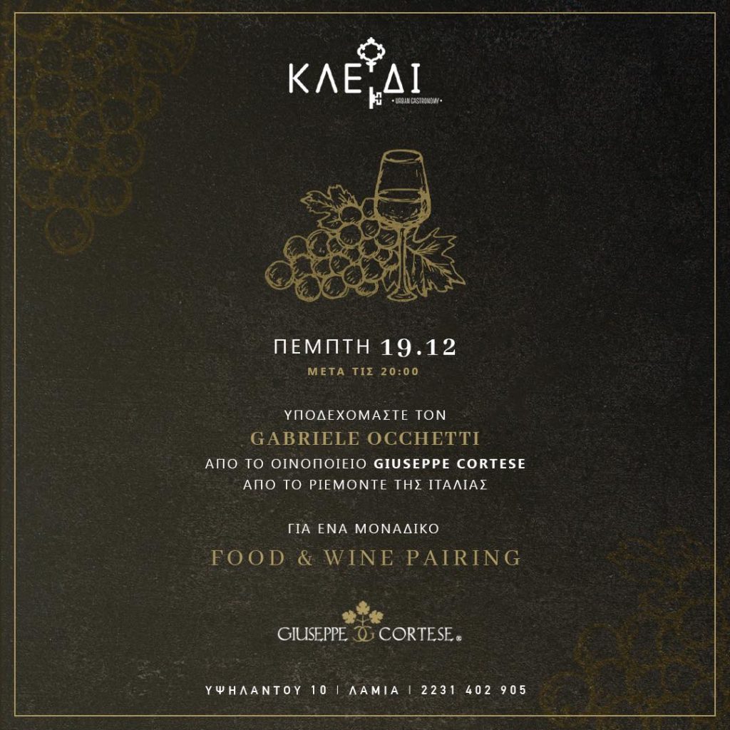 Με ιδιαίτερη τιμή, η Λαμία και το "Κλειδί" θα φιλοξενήσει τον Gabriele Occhetti, ο οποίος θα μας ταξιδέψει στον μαγικό κόσμο του κρασιού.