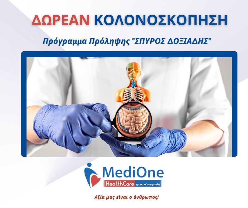 Μέσω της συνεργασίας του με το πρόγραμμα «Σπύρος Δοξιάδης», το "MediOne" προσφέρει δωρεάν κολονοσκοπήσεις σε άτομα που πληρούν τα κριτήρια του προγράμματος, δίνοντάς τους την ευκαιρία να υποβληθούν σε μία από τις πιο αξιόπιστες εξετάσεις για την ανίχνευση του καρκίνου του παχέος εντέρου.