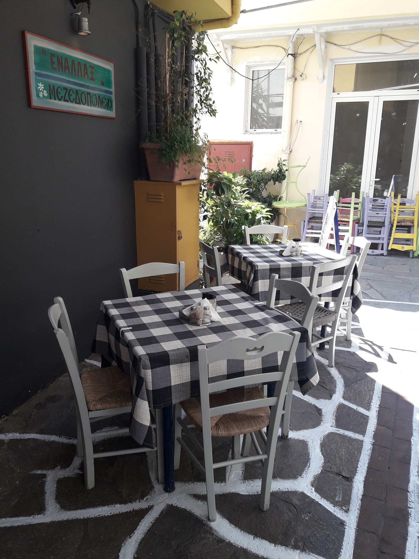 Με γευστικούς μεζέδες, εκλεκτό κρασί και τσίπουρο που συνοδεύουν ιδανικά κάθε πιάτο, το «Εναλλάξ» θα μας χαρίσει μοναδικές εμπειρίες γεύσης.
