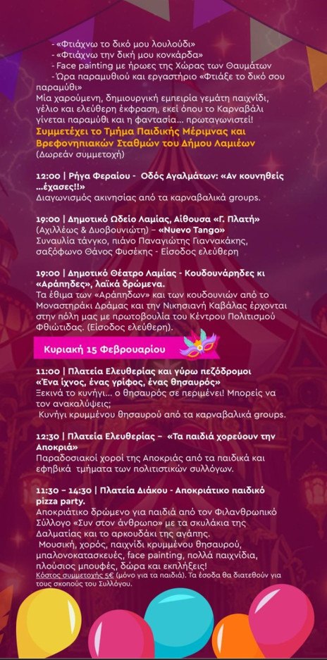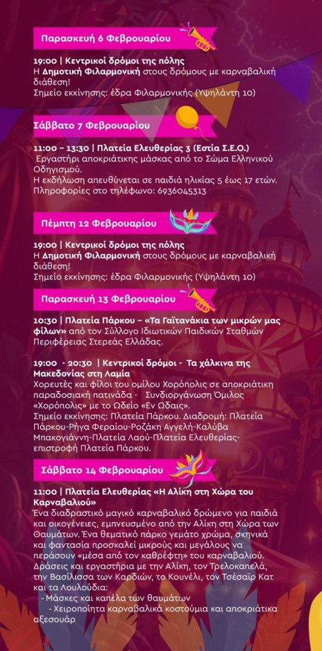 Η Λαμία σε ρυθμούς Αποκριάς - Δείτε αναλυτικά το πρόγραμμα όλων των καρναβαλικών εκδηλώσεων.