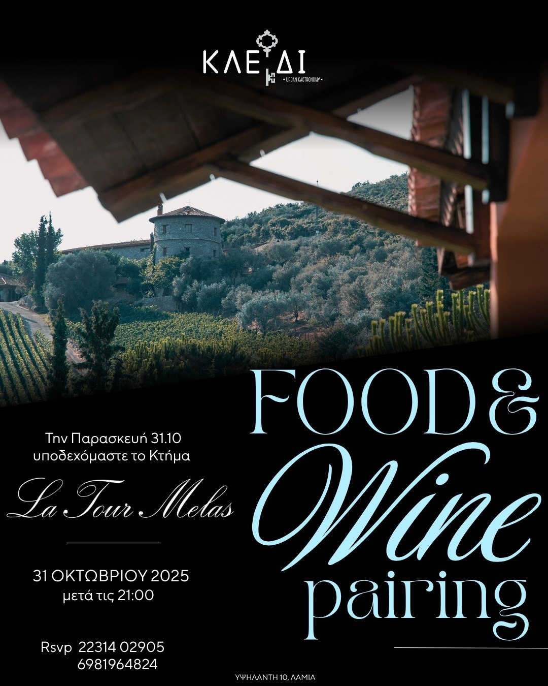 Σήμερα Παρασκευή, 31 Οκτωβρίου, το εστιατόριο Κλειδί Urban Gastronomy στη Λαμία καλεί όλους τους λάτρεις του καλού φαγητού και του εκλεκτού κρασιού σε μια μοναδική βραδιά dine & wine.