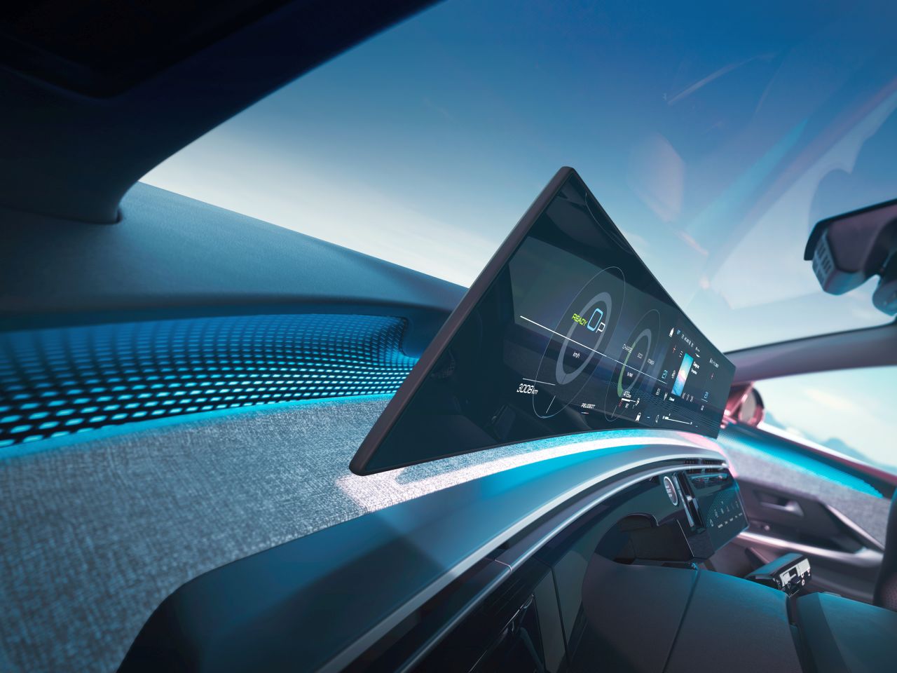 Το ενιαίο αυτό πάνελ εκτείνεται από το αριστερό άκρο του ταμπλό έως την κεντρική κονσόλα, και συνδυάζει με εργονομικό τρόπο τον ψηφιακό πίνακα οργάνων και την κεντρική οθόνη αφής, προσφέροντας πλήρη πληροφόρηση και απόλυτη ευχρηστία. Η θέση της οθόνης είναι ελαφρώς κυρτή προς τον οδηγό, χωρίς να χάνει την προσβασιμότητά της από τον συνοδηγό.
