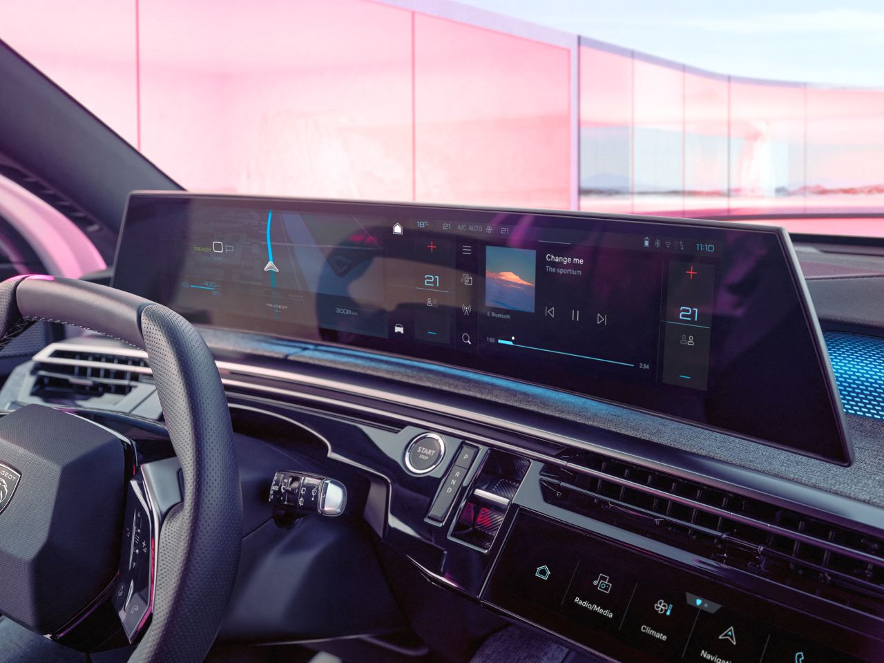 Η νέα γενιά του Panoramic i-Cockpit® διατηρεί τη φιλοσοφία των τριών βασικών στοιχείων που καθιέρωσαν το αρχικό concept – το head-up display, τη μεγάλη κεντρική οθόνη και το συμπαγές τιμόνι – και τα εξελίσσει ενσωματώνοντάς τα σε μία καινοτόμα κυρτή πανοραμική οθόνη 21 ιντσών υψηλής ευκρίνειας, που φαίνεται να αιωρείται μπροστά στον οδηγό.