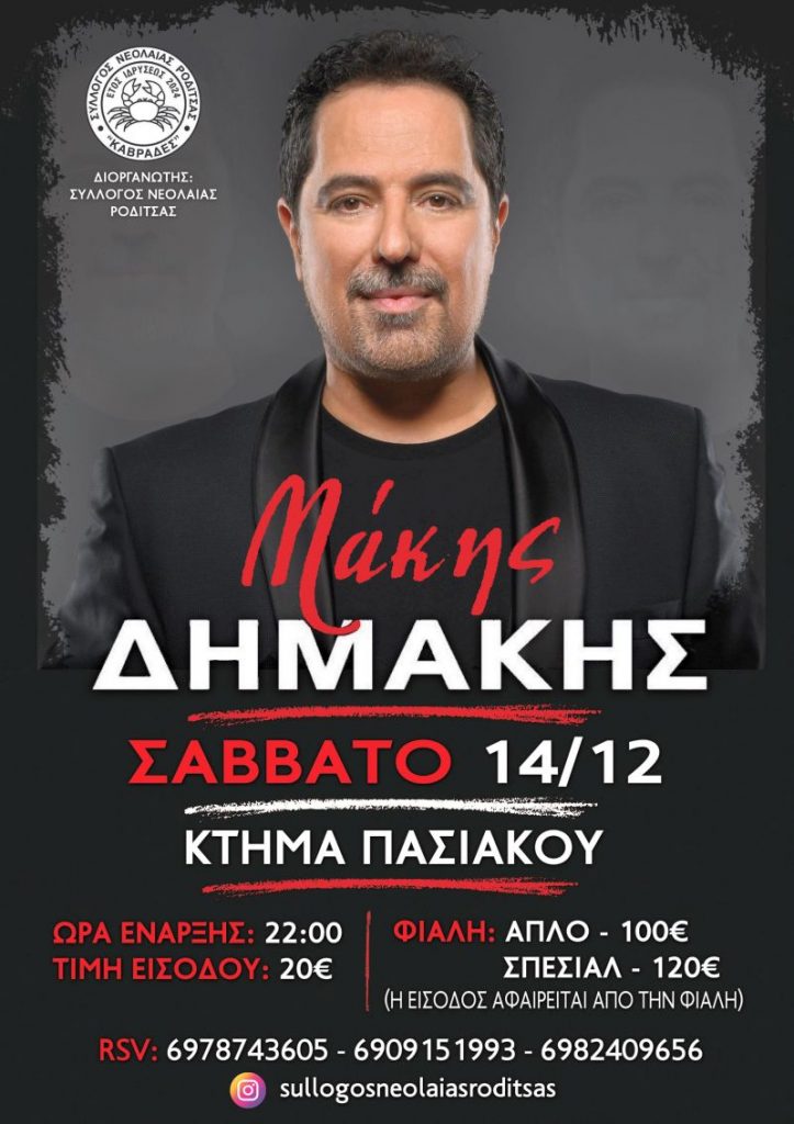 Ο Σύλλογος Νεολαίας Ροδίτσας υποδέχεται τον Μάκη Δημάκη για ένα μοναδικό live!