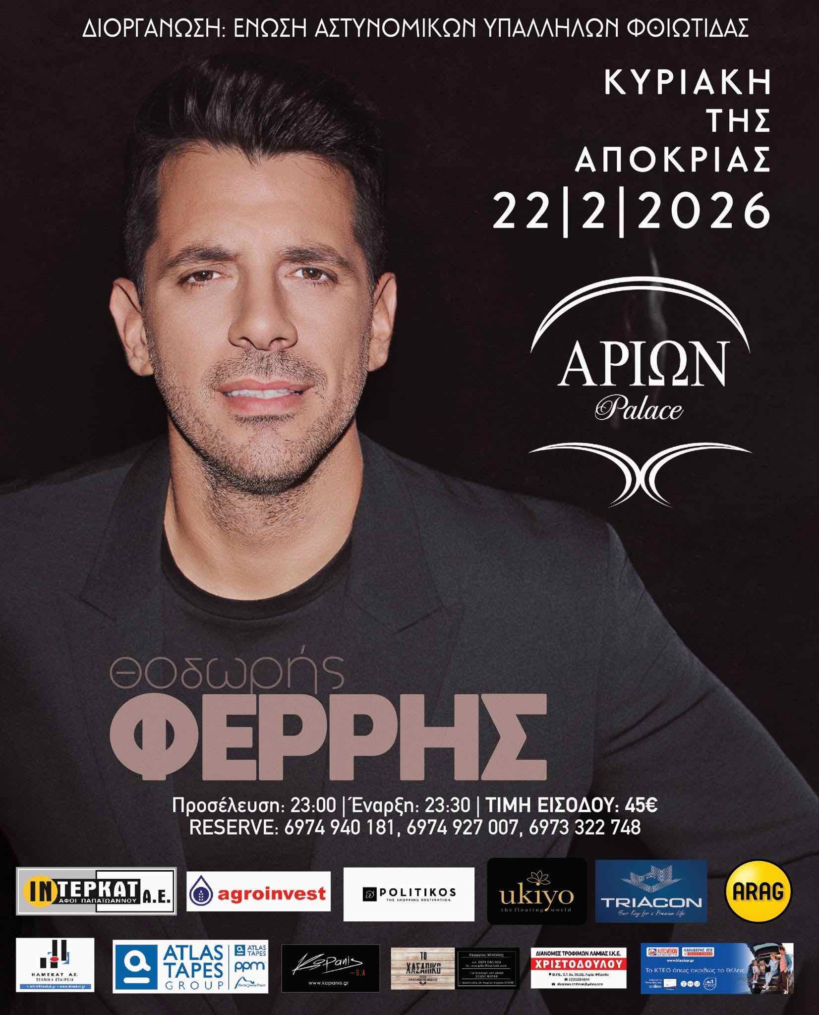 Ο αγαπημένος τραγουδιστής την Κυριακή (22/2) στο «ΑΡΙΩΝ PALACE» στην ετήσια χοροεσπερίδα των αστυνομικών της Φθιώτιδας.