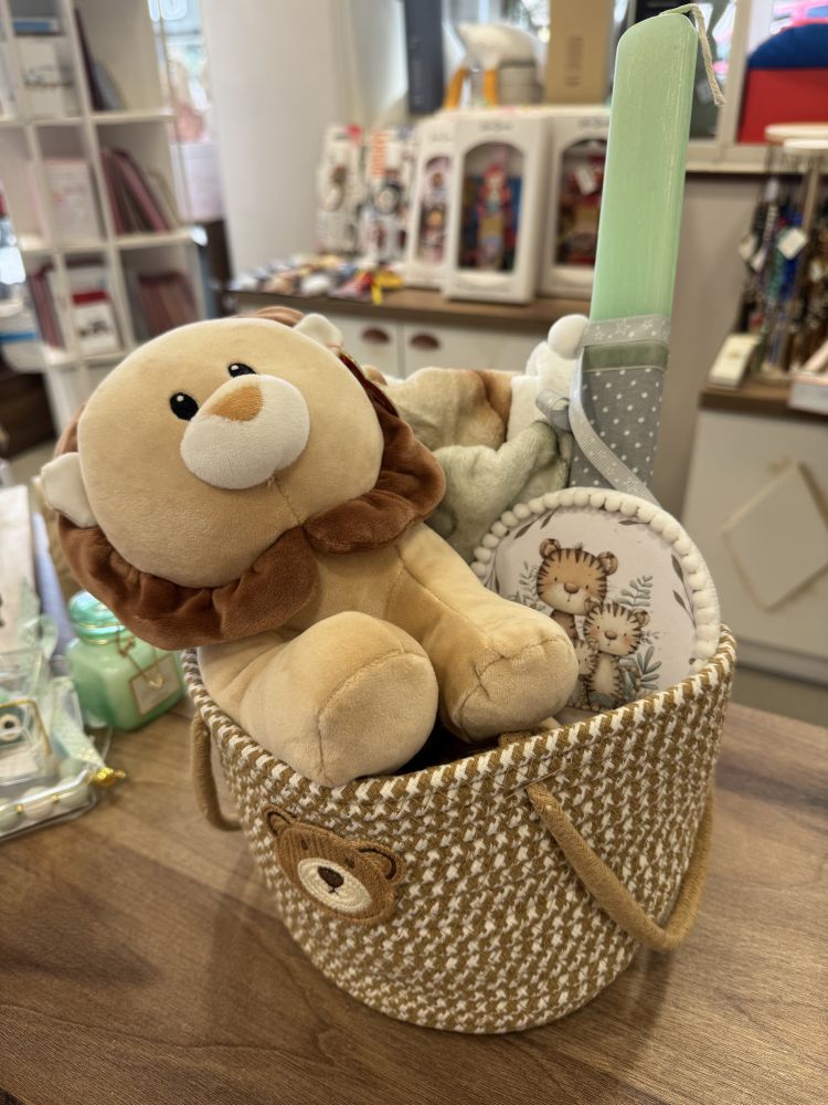 Αν ψάχνετε κάτι πιο ολοκληρωμένο για το βαφτιστήρι σας, στο κατάστημα θα βρείτε προσεγμένες πασχαλινές συνθέσεις που συνδυάζουν λαμπάδα με παιχνίδια, φιγούρες και αγαπημένους παιδικούς χαρακτήρες.