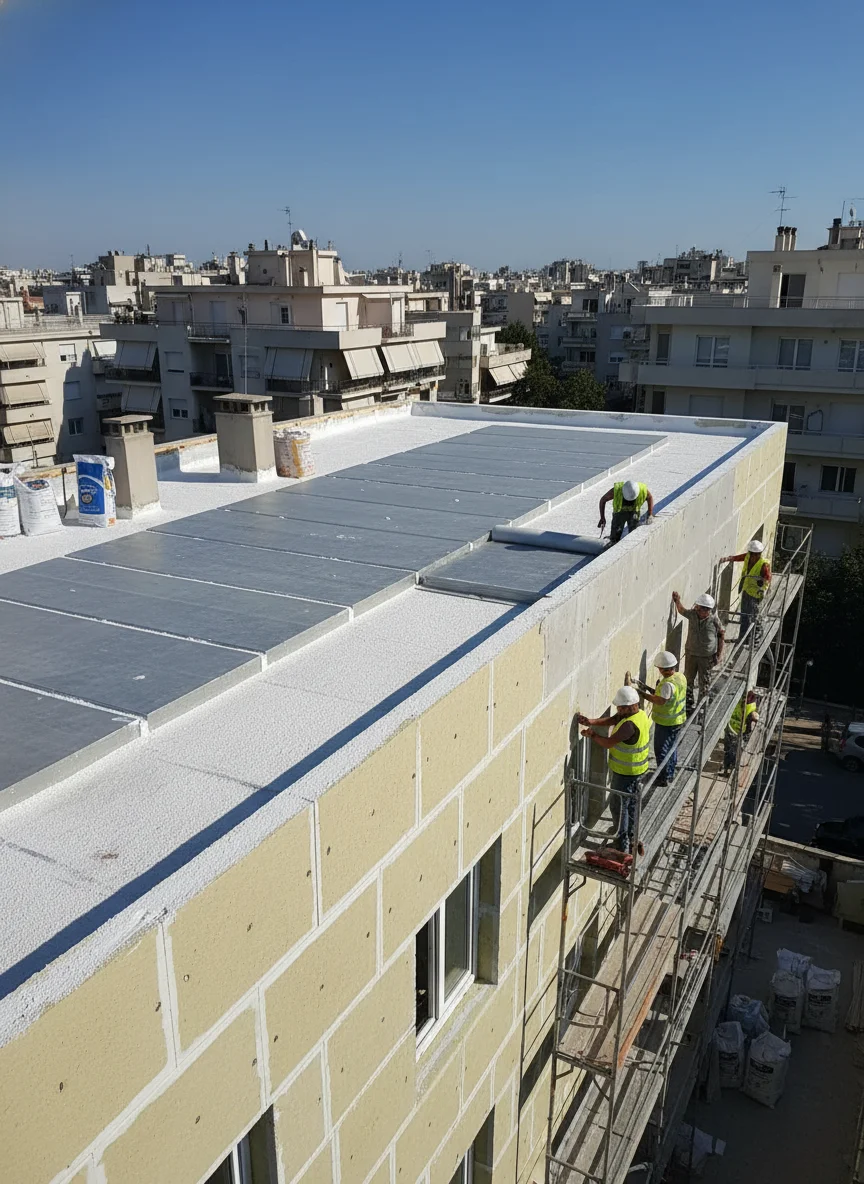 Εφαρμόζουν σύγχρονα συστήματα θερμομόνωσης σε προσόψεις και ταράτσες, εξασφαλίζοντας μείωση θερμικών απωλειών, χαμηλότερη κατανάλωση ενέργειας και προστασία του κτιρίου.
