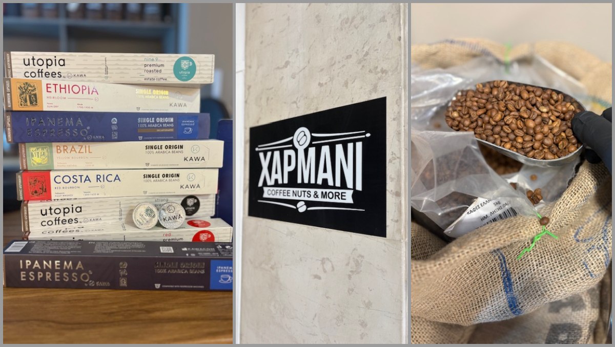 Στο καφεκοπτείο ακόμα έχετε την ευκαιρία να δοκιμάσετε φρεσκοκομμένο ελληνικό καφέ, τυποποιημένο ντεκαφεϊνέ σε πολλές γεύσεις όπως μαστίχα, κάρδαμο και φουντούκι, καφέ φίλτρου σε γεύσεις βανίλια, φουντούκι, καραμέλα, αμύγδαλο, μαστίχα και amaretto.