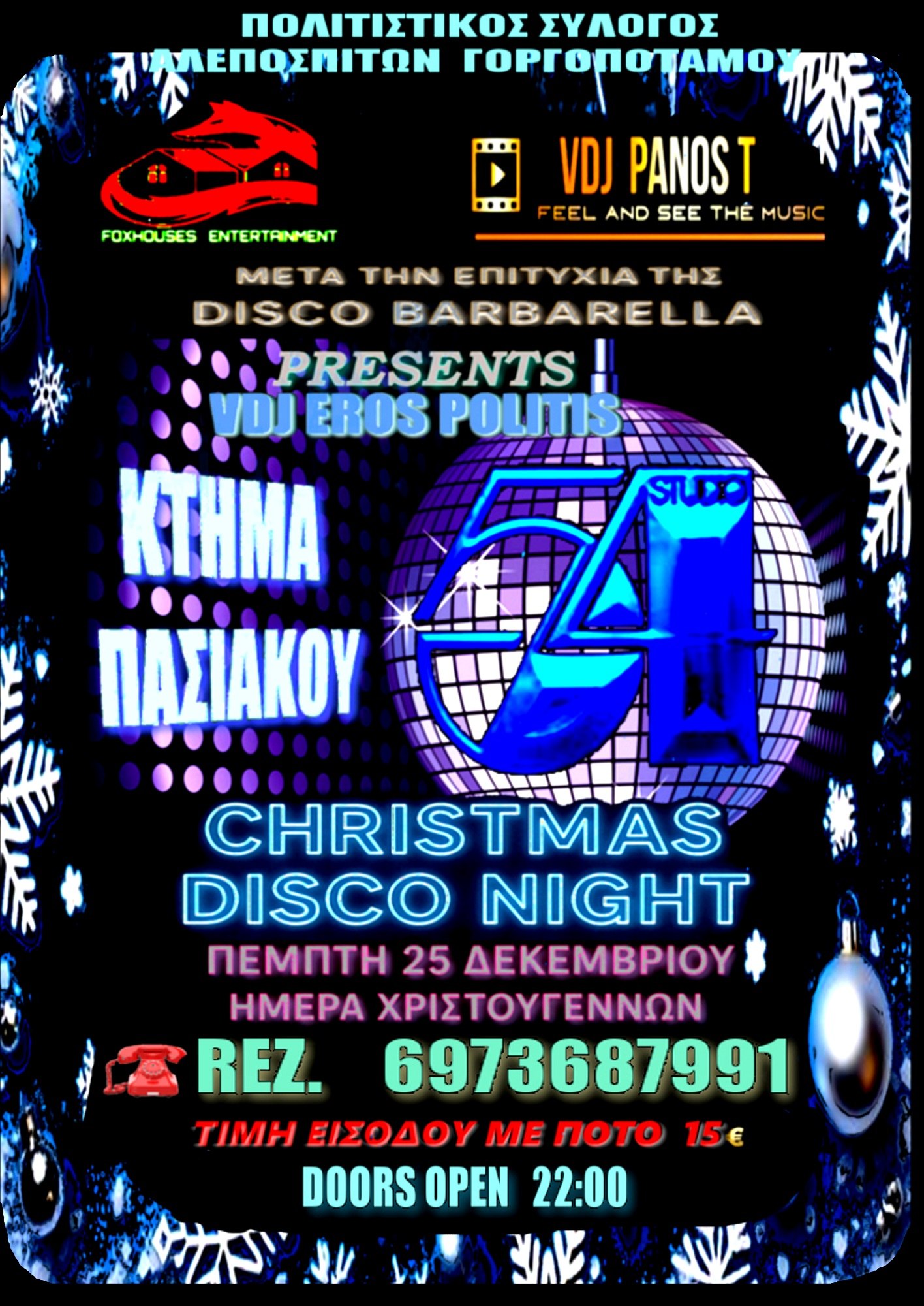 🥂 Christmas Disco Night στο Κτήμα Πασιακού, την Πέμπτη 25 Δεκεμβρίου, ανήμερα των Χριστουγέννων.