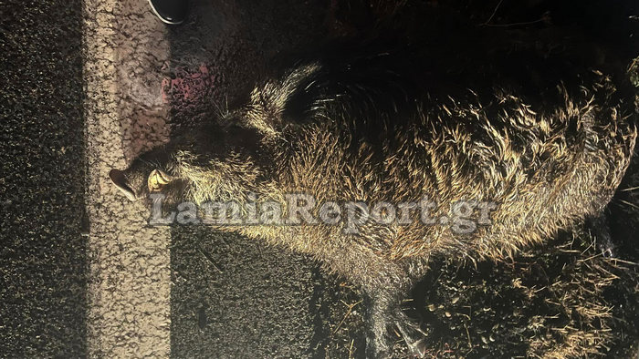 Το μεγάλο αγριογούρουνο ωστόσο σκοτώθηκε και το αγροτικό αυτοκίνητο έπαθε πολύ μεγάλες ζημιές.