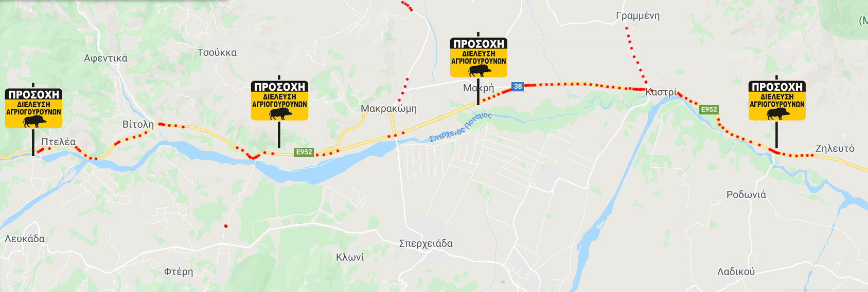 Ο Αναπληρωτής Δήμαρχος Μακρακώμης Πάνος Κοντογεώργος υπενθυμίζει το χάρτη που είχαμε δημοσιεύσει στο LamiaReport πριν από 2,5 περίπου χρόνια για τα επικίνδυνα σημεία διέλευσης των άγριων ζώων, αλλά όπως επισημαίνει πλέον είναι παντού.
