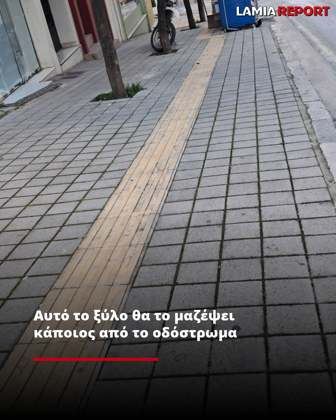 «Οδος Καραγιαννοπουλου, κεντρο λαμιας...καποιον εξυπηρετει αυτο το "μαδερι" για να βαζει το αμαξι του απροσκοπτα στο νομιμο ή παρανομο παρκινγκ....κι ασε τους πεζους και τα οχηματα να σκονταφτουν...αυτος το αμαξι το παρκαρισε χωρις να ζορισει τα λαστιχα στο ρειθρο του πεζοδρομιου! Μεγαααααλη επιτυχια! Ατομικη ευθυνη για το κοινωνικο συνολο! Αισχος!»
