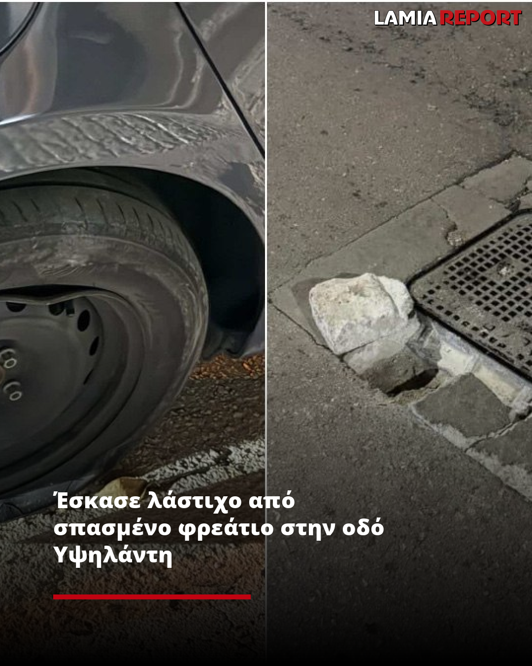 Έσκασε λάστιχο από σπασμένο φρεάτιο στην οδό Υψηλάντη