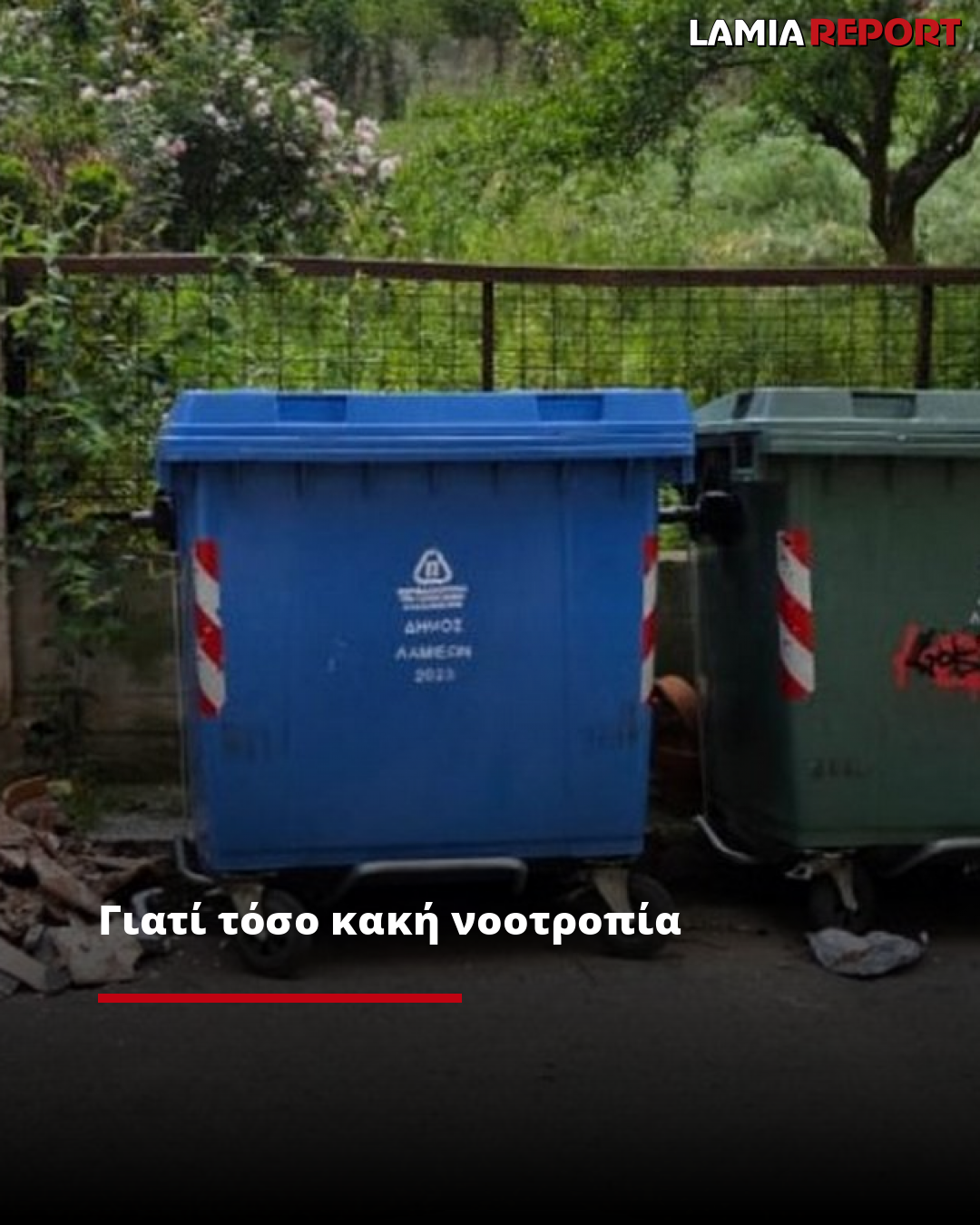 Λαμία, οδός Μακροπούλου. Οι κάδοι μόλις έχουν καθαριστεί όπως και ο δρόμος και μέσα σε λίγη ώρα κάποιος συμπολίτης μας θεώρησε σκόπιμο ότι έπρεπε να ξεφορτωθεί τα μπάζα του.
