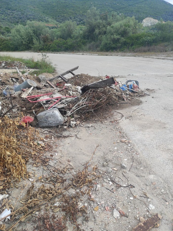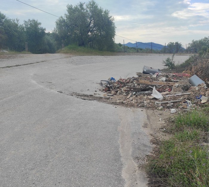 Γλύφα: Σκουπίδια και μπάζα μέσα στο δρόμο