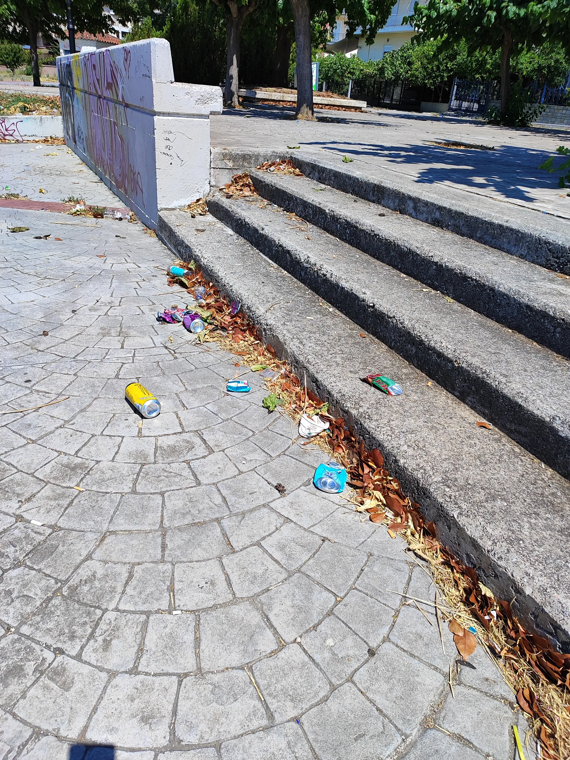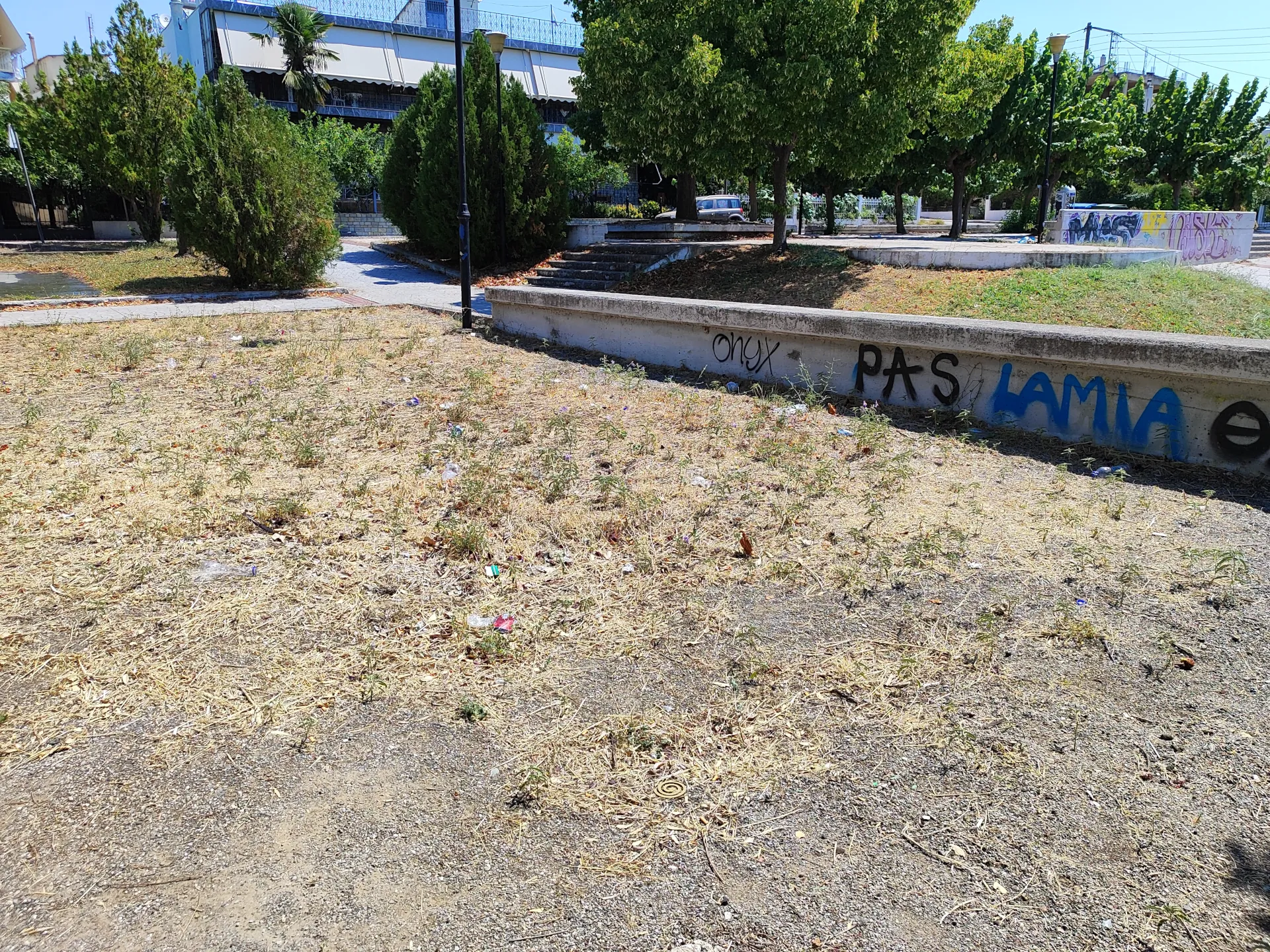 Κι όταν ξημερώνει η μέρα, φανερώνεται ο σκουπιδότοπος στον οποίο έχει μετατραπεί και η αδιαφορία των αρμόδιων δημοτικών υπηρεσιών για να τη συντηρήσουν. Δέντρα που θέλουν κλάδεμα, γκαζόν που έχει ξεραθεί, σπασμένα παγκάκια, άδεια πακέτα τσιγάρα, πεταμένα μπουκάλια και παρατημένες πλαστικές σακούλες στο έλεος του θεού και του χρόνου, συνθέτουν ένα βρωμερό τοπίο το οποίο δεν αρμόζει ούτε στην πόλη μας ούτε στην εποχή μας. Ποτέ άλλοτε αυτή η πλατεία δεν είχε βρεθεί σ’ αυτό το υποβαθμισμένο σημείο.