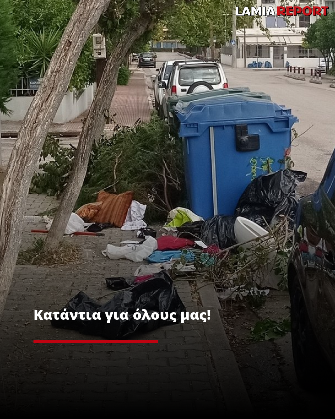 Η συγκεκριμένη εικόνα είναι Σάββατο (5/10) σε περιοχή της Βόρειας Λαμίας σε πεζοδρόμιο με κάδους απορριμμάτων.