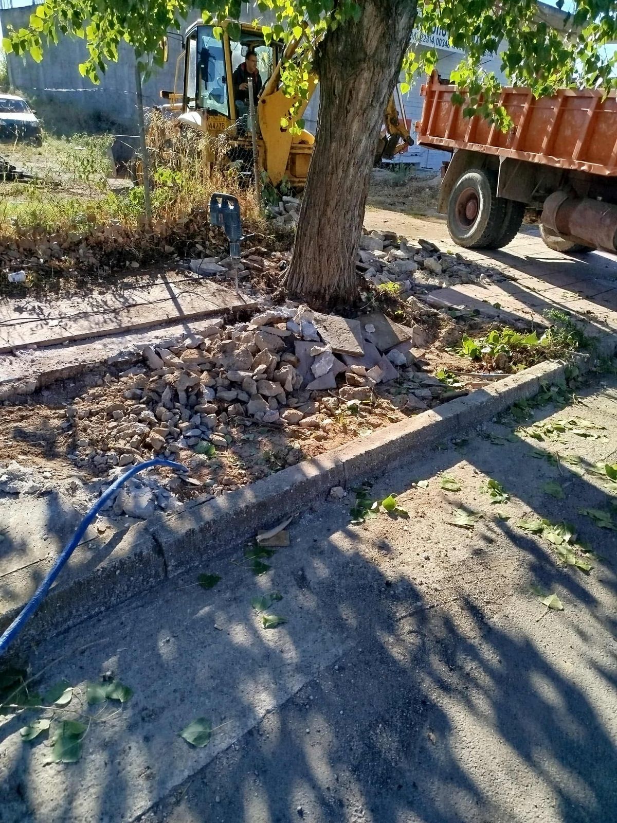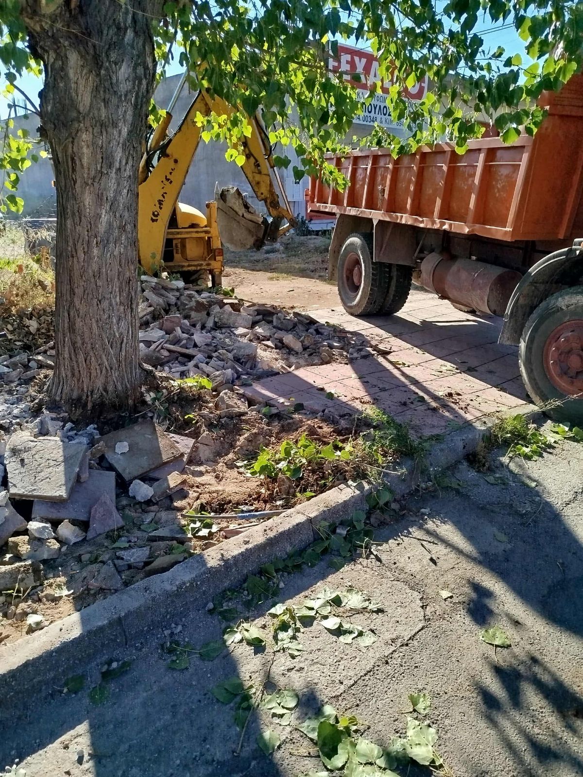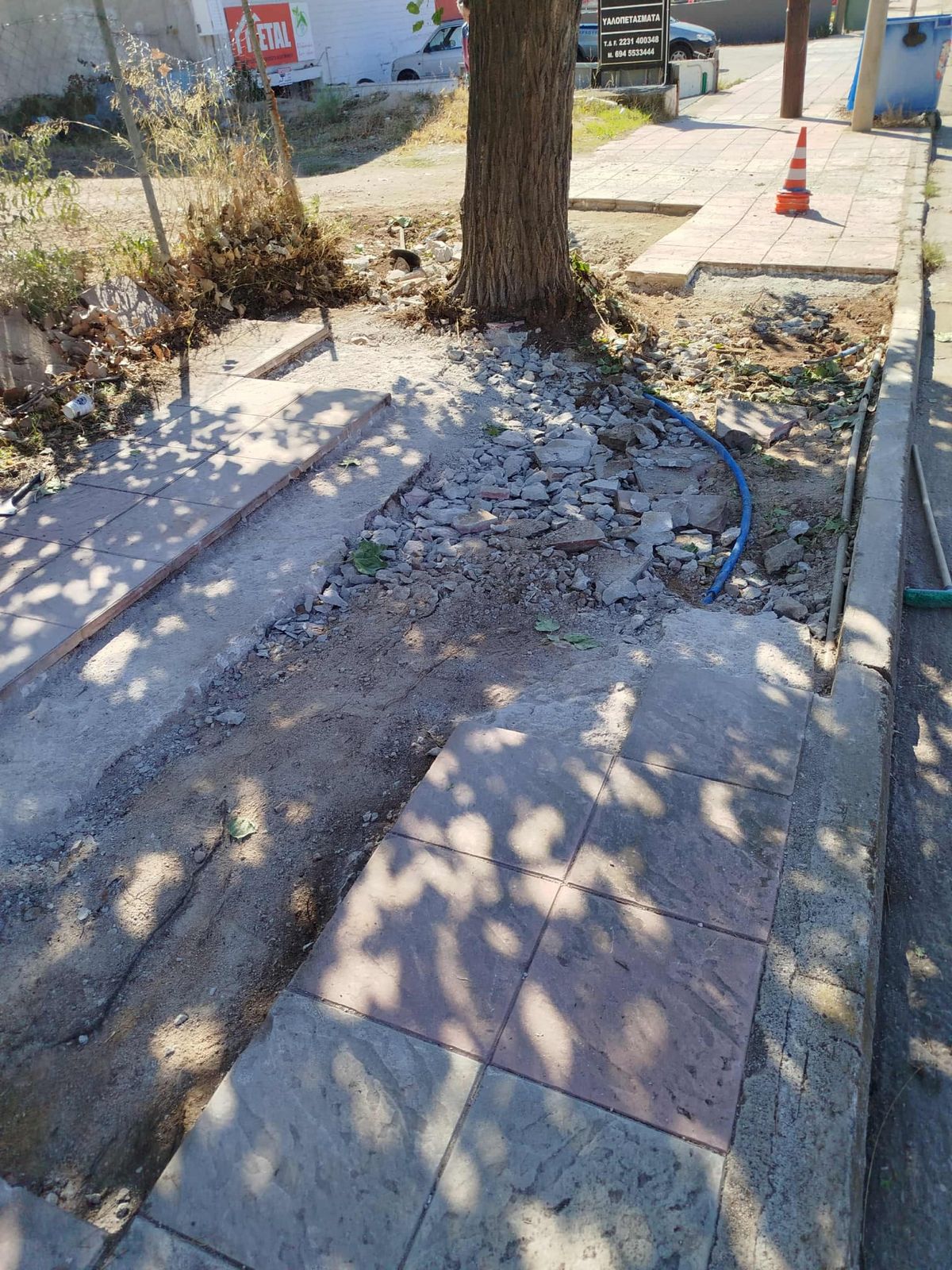 Συνεργεία του δήμου επενέβησαν και αποκατέστησαν τις πλάκες αφήνοντας τα δέντρα να ανασάνουν.