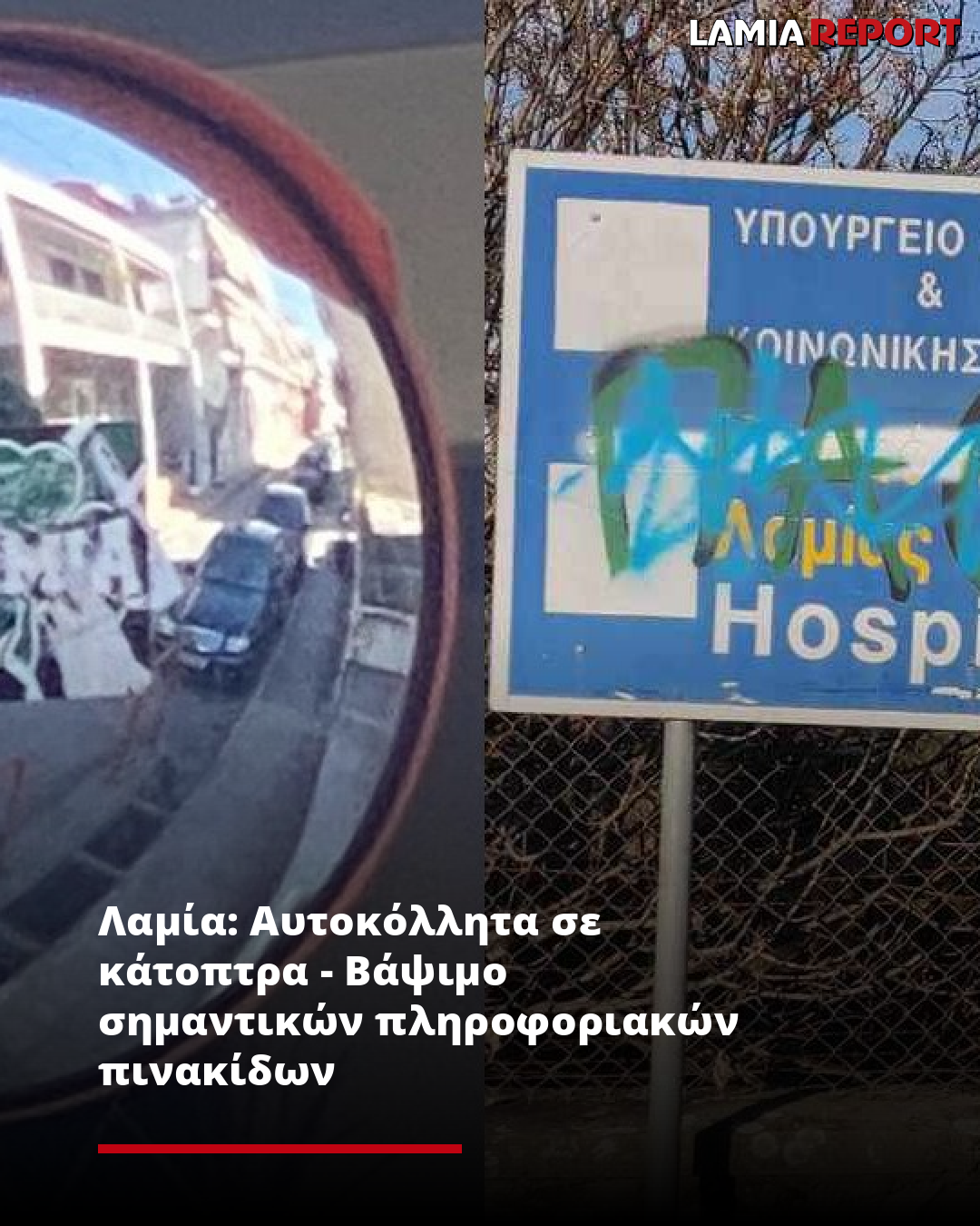 Λαμία: Αυτοκόλλητα σε κάτοπτρα - Βάψιμο σημαντικών πληροφοριακών πινακίδων