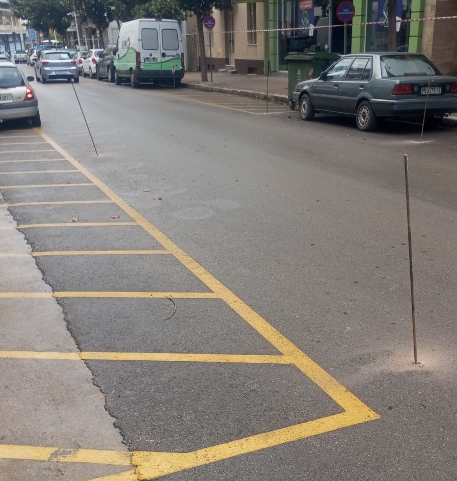 Στην οδό Καποδιστρίου, μπήκαν με τον τρόπο που βλέπετε στις φωτογραφίες, σίδερα για να μην παρκάρουν εκ νέου αυτοκίνητα προφανώς για να γίνουν εργασίες για το φυσικό αέριο.
