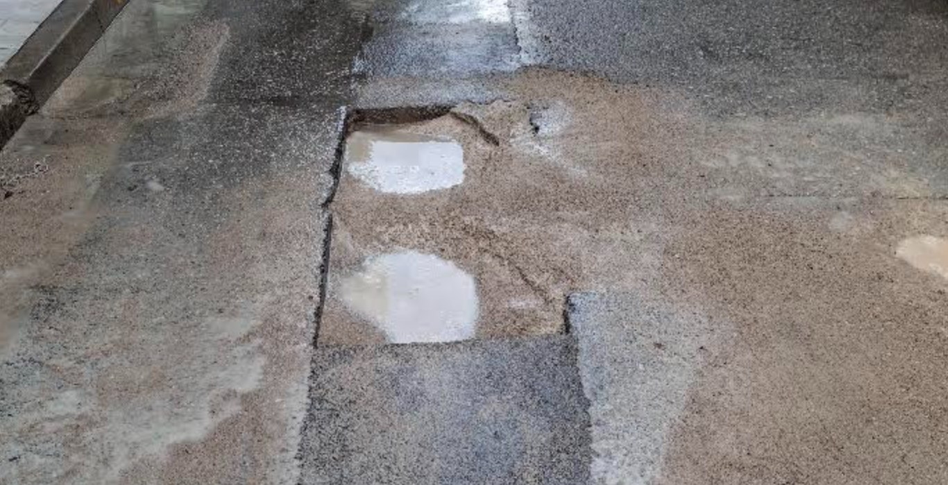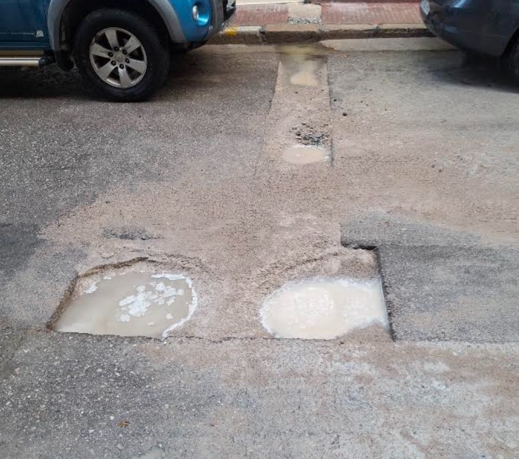 Η βροχή μεγάλωσε τις λακκούβες που υπήρχαν στην οδό Αγίου Νικολάου, με αποτέλεσμα να δημιουργηθούν παγίδες για διερχόμενους οδηγούς.
