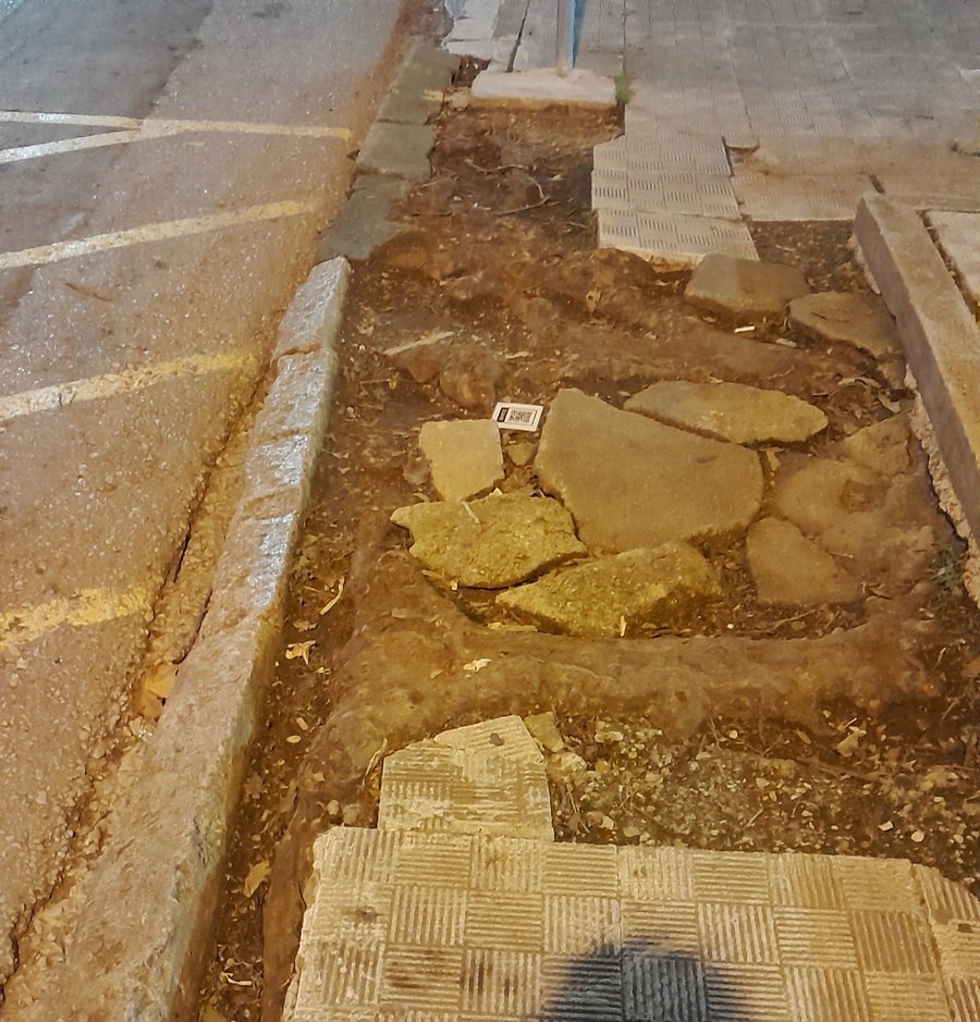 Επικίνδυνη λακκούβα βρίσκεται σε πεζοδρόμιο πίσω από τον Άγιο Αθανάσιο στην πλατεία απέναντι από το μίνι μάρκετ.