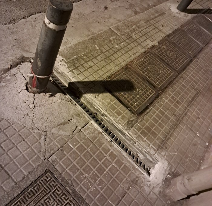 Η συγκεκριμένη σχάρα για τη διέλευση ακαθάρτων αντί να προστατεύει, έχει εξελιχθεί σε παγίδα, έχοντας αποδειχθεί εμπόδιο για καμιά 15αρια άτομα που έπεσαν.